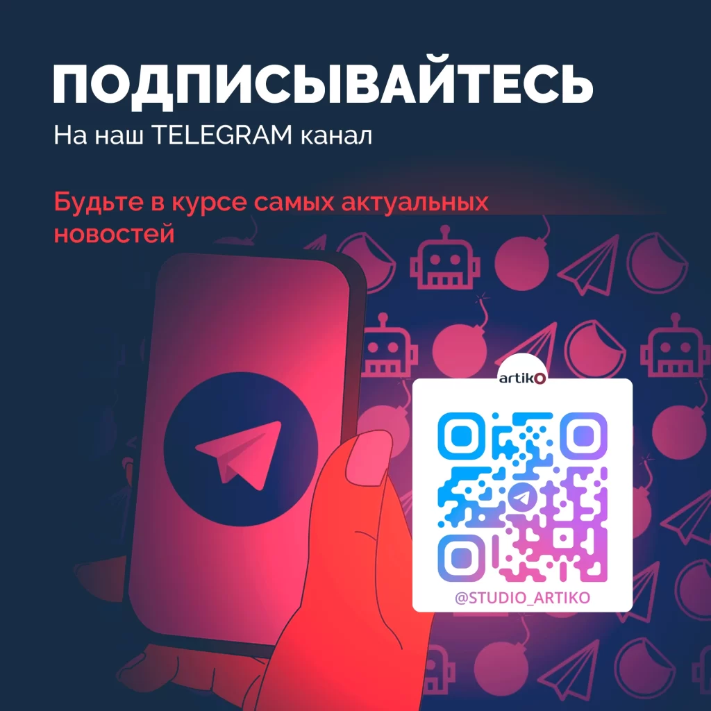Друзья! Подписывайтесь на наш телеграмм-канал @studio_artiko и будьте в курсе самых актуальных новостей, первыми узнавайте о наших выгодных предложениях и новинках.