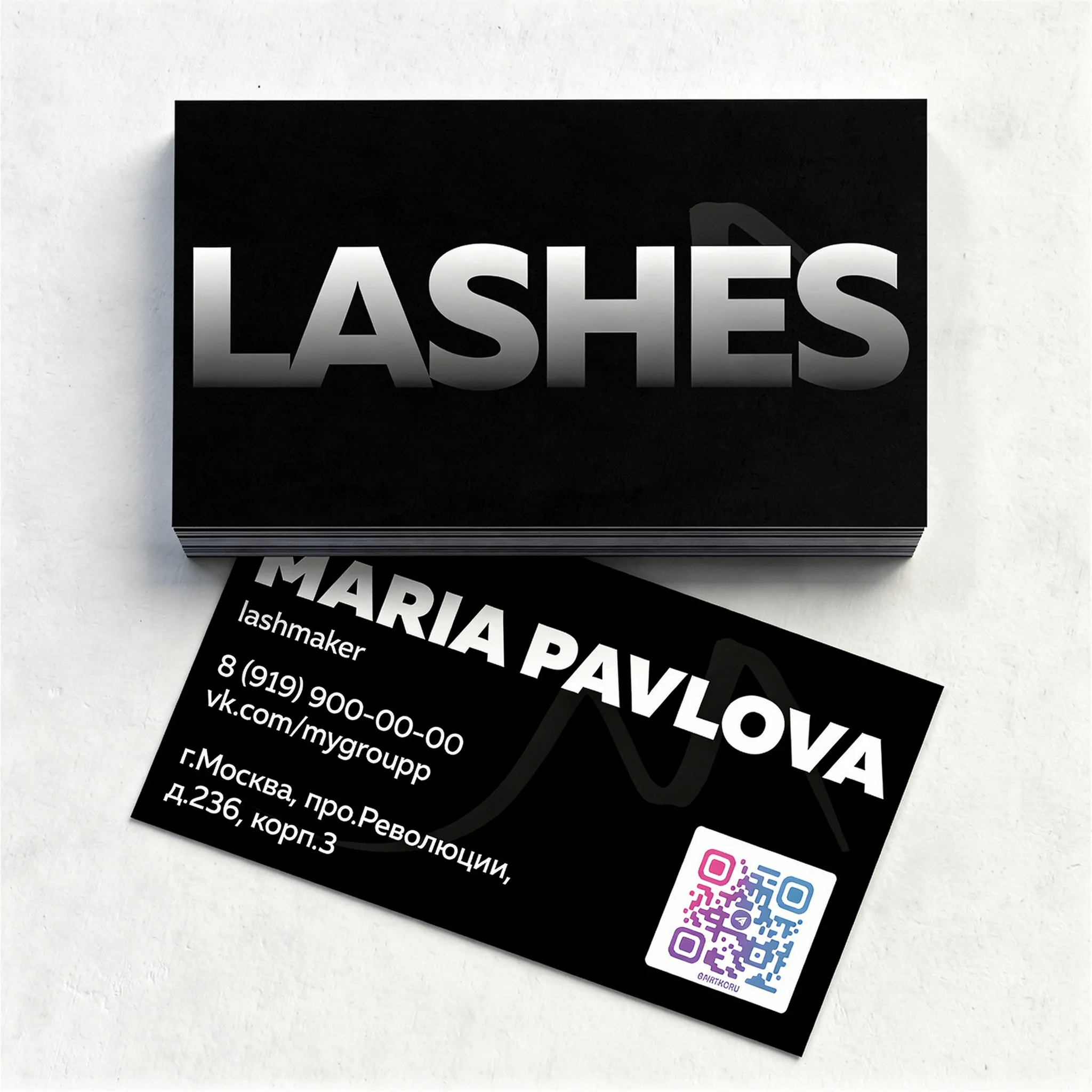 Динамичный и выразительный шаблон визитки для лешмейкера. Насыщенный чёрный фон вместе с чёткими белыми элементами создаёт эффект контраста, подчеркивающий уверенность и опыт специалиста. Шаблон в удобном формате .ai легко адаптировать в Adobe Illustrator под собственный стиль и пожелания. Это решение обязательно сделает визитку запоминающейся и привлечёт внимание потенциальных клиентов.