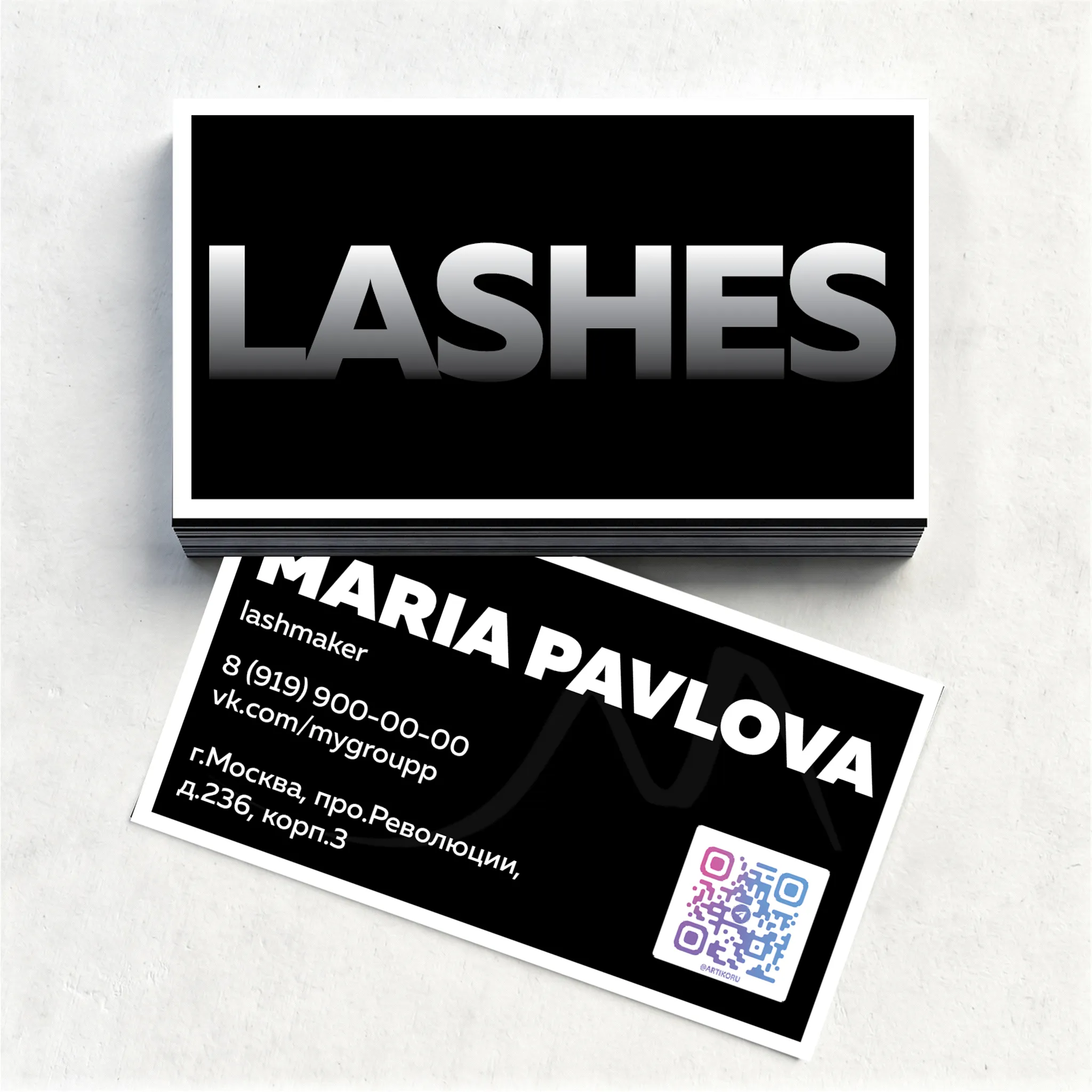 Эксклюзивный и презентабельный шаблон визитки для лешмейкера. Контрастная насыщенная чёрная основа с белой рамкой создает образ изысканности и внимания к деталям. Простота оформления и открытый доступ для редактирования в формате .ai позволяют свободно менять содержимое и элементы дизайна в Adobe Illustrator. Такое решение придаст вашему бизнесу уверенности и поднимет уровень доверия среди клиенток.