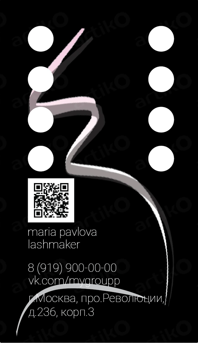 Элегантный и современный шаблон визитки для лешмейкера. Демонстрирует профессионализм и утончённый вкус, легко настраивается в Adobe Illustrator (.ai), улучшает имидж и помогает привлечь больше клиентов. Доступен теперь с лаконичным чёрным дизайном.