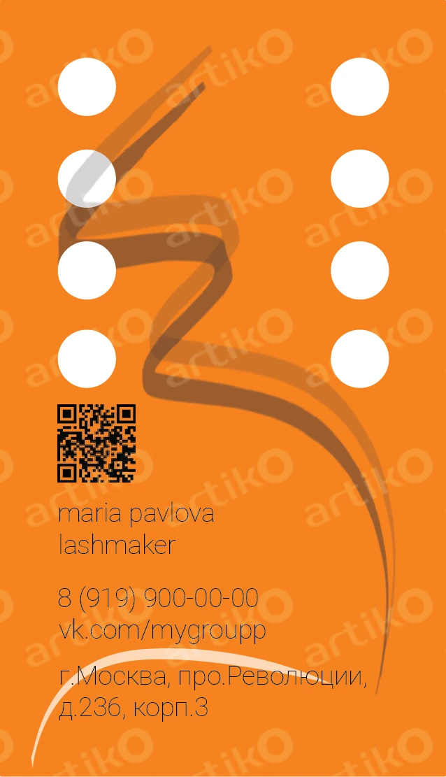 Профессиональный и современный шаблон визитки для мастеров по наращиванию ресниц. Акцентирует индивидуальность и профессионализм, привлекает внимание клиентов. Легко редактируется в Adobe Illustrator (.ai). Идеален для улучшения имиджа и привлечения новых клиентов. Теперь доступен с ярким оттенком оранжевого цвета
